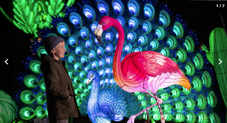 Admire elegant flamingos and shimmering peacocks and spot the playful penguins and enchanting red pandas. Marvel at radiant lanterns, including the largest EVER lantern featured at Wild Lights (and one of the biggest in Europe).